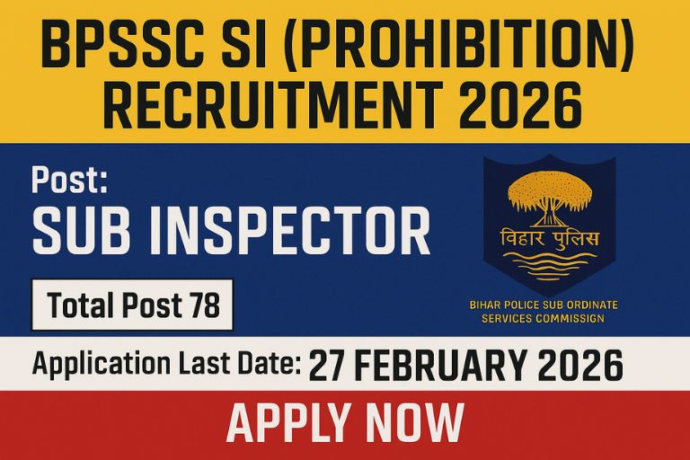 BPSSC SI (Prohibition) Recruitment 2026 : Apply Online for 78 Sub Inspector Posts
