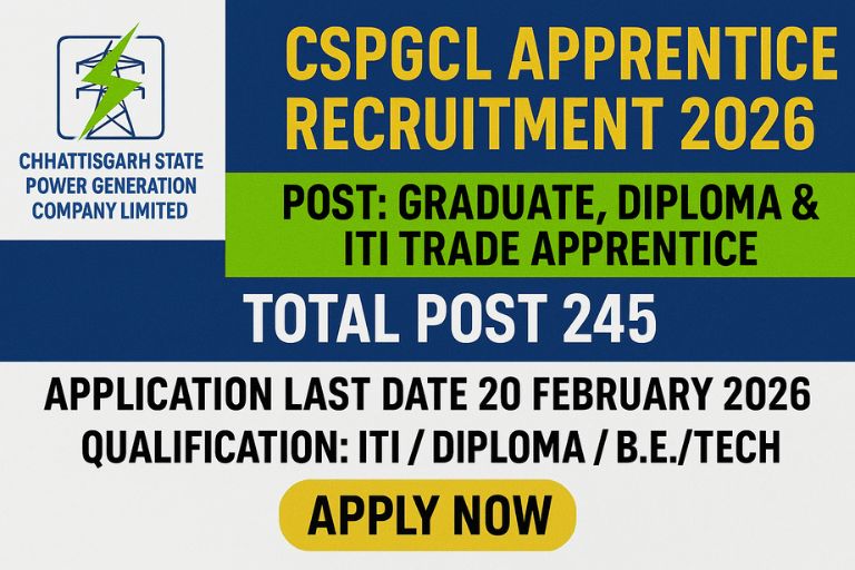CSPGCL Apprentice Recruitment 2026 : Apply for 245 Graduate, Diploma & ITI Posts
