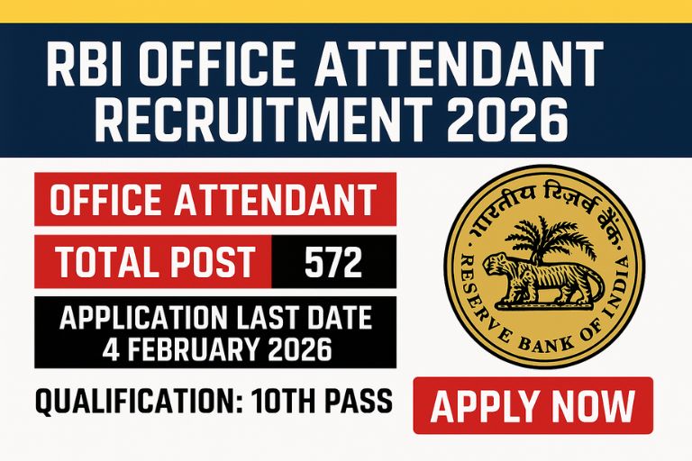 RBI Office Attendant Recruitment 2026 : Apply Online for 572 Posts